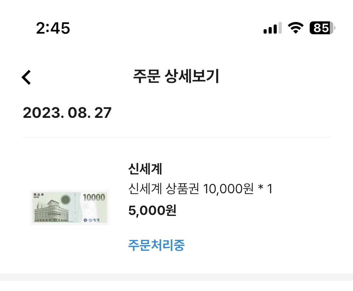 처음에 이런 교환비율이 믿기지 않아서 5000 캐시가 되자마자 바로 상품권 하나를 구매해 보았어요